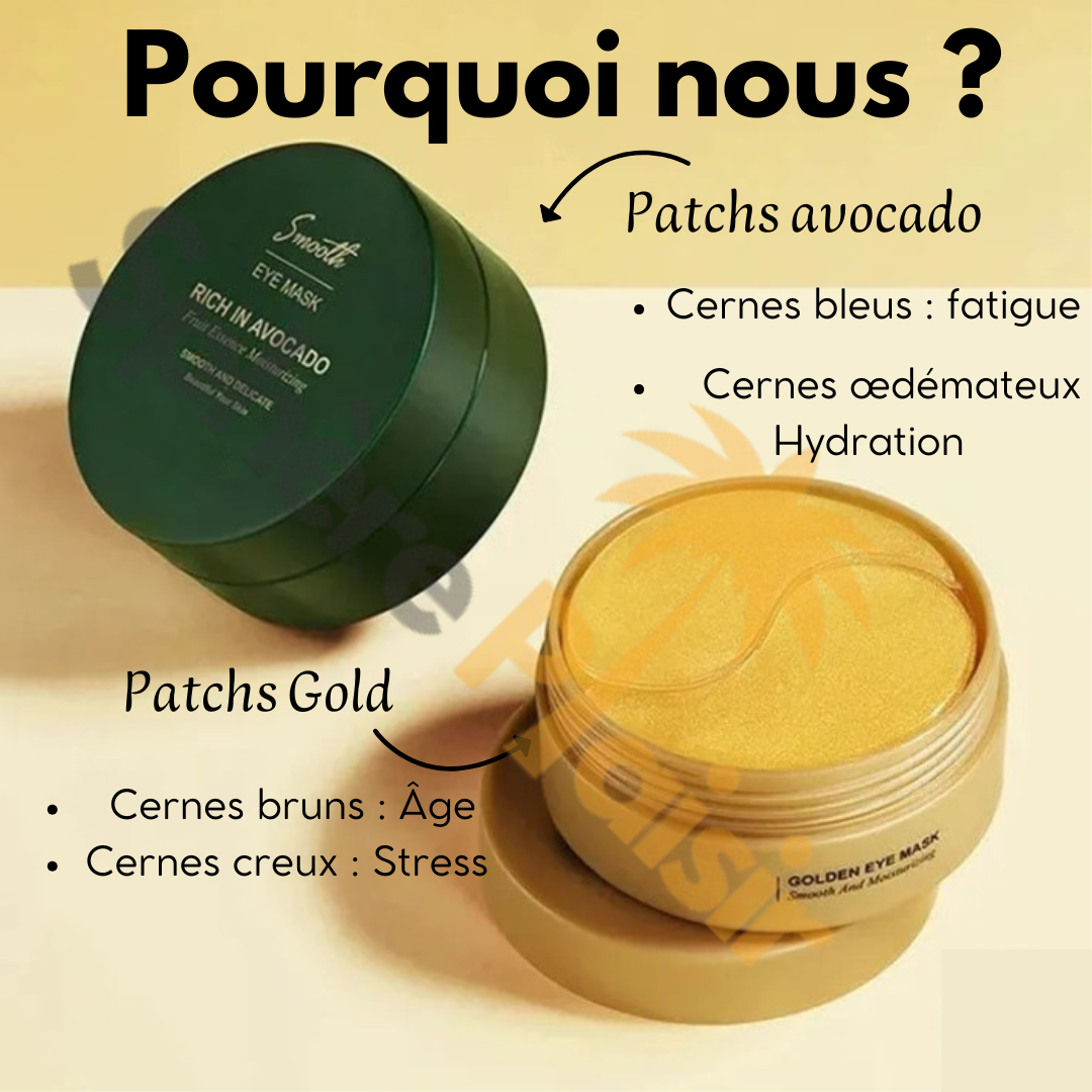 Our patches are designed to treat different types of dark circles. The avocado pot focuses on blue and edematous dark circles, while the Gold targets brown and hollow dark circles.